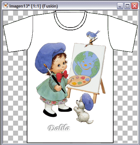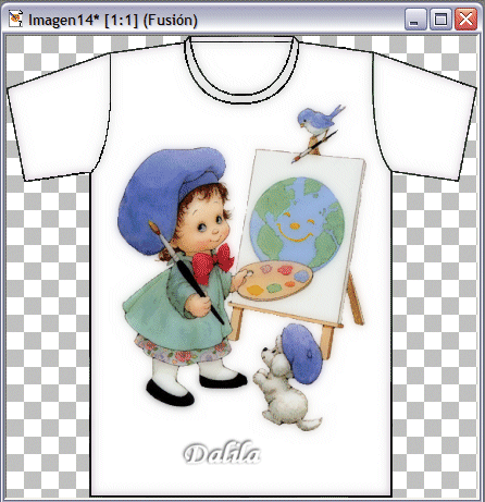 Pintamos el Tubo en un color de nuestra elección con el bote de Pintura. Para ello iremos pinchando con la Varita Magica en las diferentes partes de la Camiseta y pintamos.